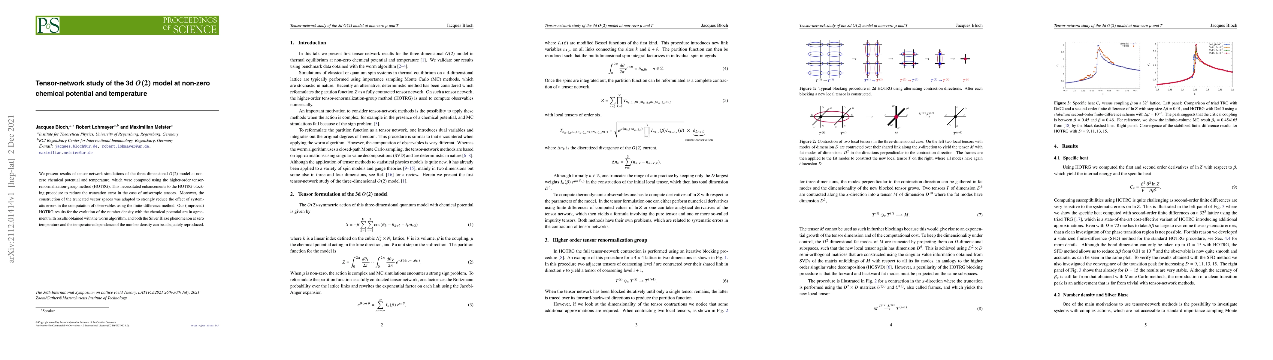 We present results of tensor-network simulations of the three-dimensional $O(2)$ model at non-zero chemical potential and temperature, which were computed using the higher-order tensor-renormalization-group method (HOTRG). This necessitated enhancements to the HOTRG blocking procedure to reduce the truncation error in the case of anisotropic tensors. Moreover, the construction of the truncated vector spaces was adapted to strongly reduce the effect of systematic errors in the computation of observables using the finite-difference method. Our (improved) HOTRG results for the evolution of the number density with the chemical potential are in agreement with results obtained with the worm algorithm, and both the Silver Blaze phenomenon at zero temperature and the temperature dependence of the number density can be adequately reproduced.