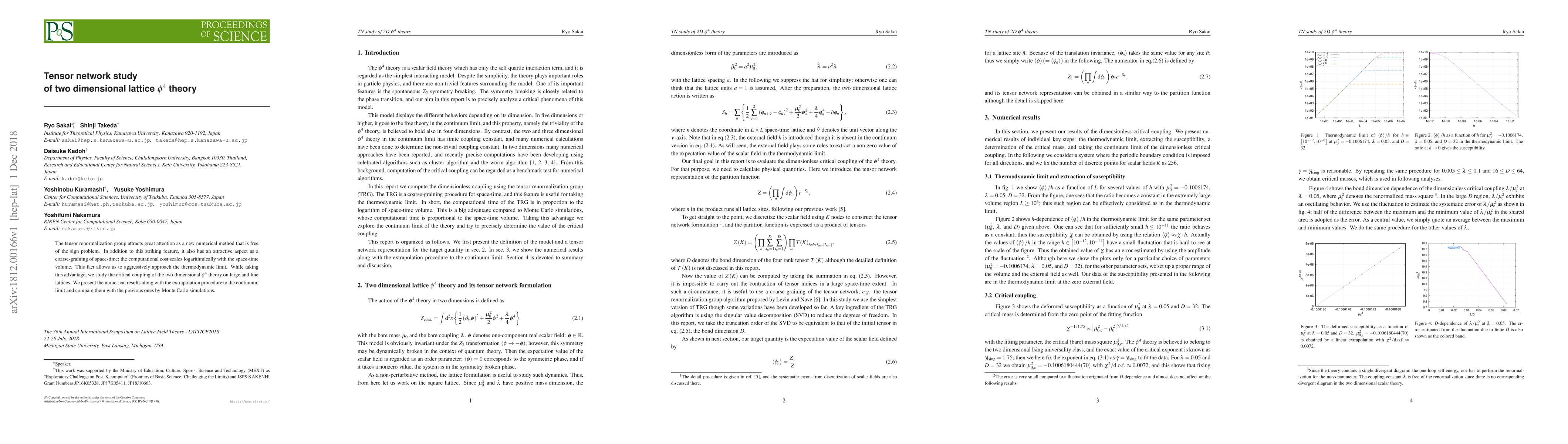 This paper employs tensor renormalization group methods to study the critical coupling of two-dimensional $\phi^{4}$ theory, avoiding the sign problem and scaling computationally logarithmically with volume. Results from large lattice simulations are extrapolated to the continuum limit and compared with Monte Carlo simulation data.