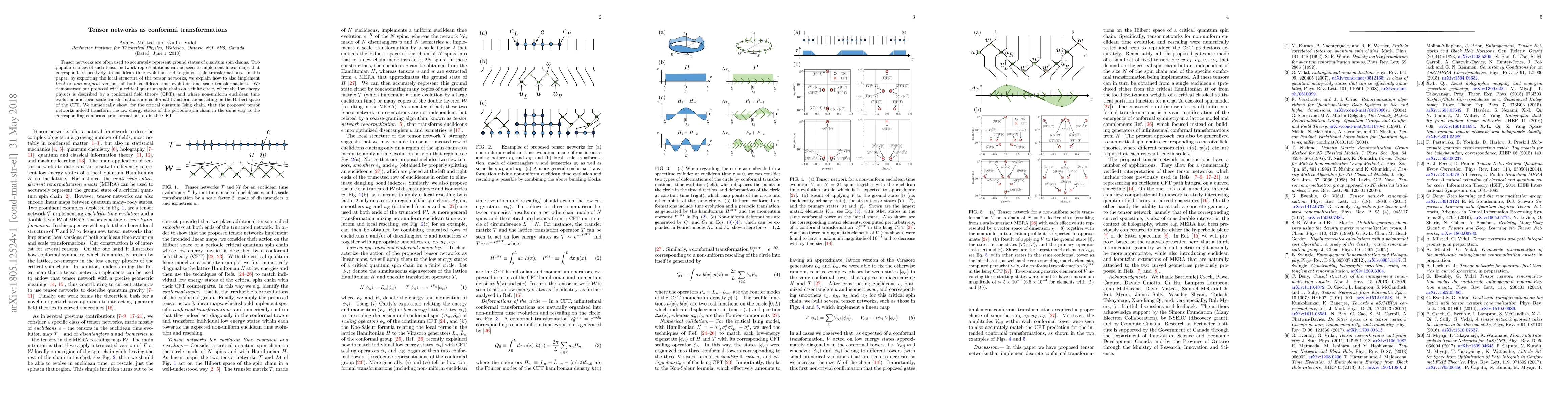 This paper explores how tensor networks can implement local versions of euclidean time evolution and scale transformations, demonstrating this through a critical quantum spin chain on a finite circle. The proposed tensor networks accurately transform low energy states in the same manner as conformal transformations in the corresponding conformal field theory.