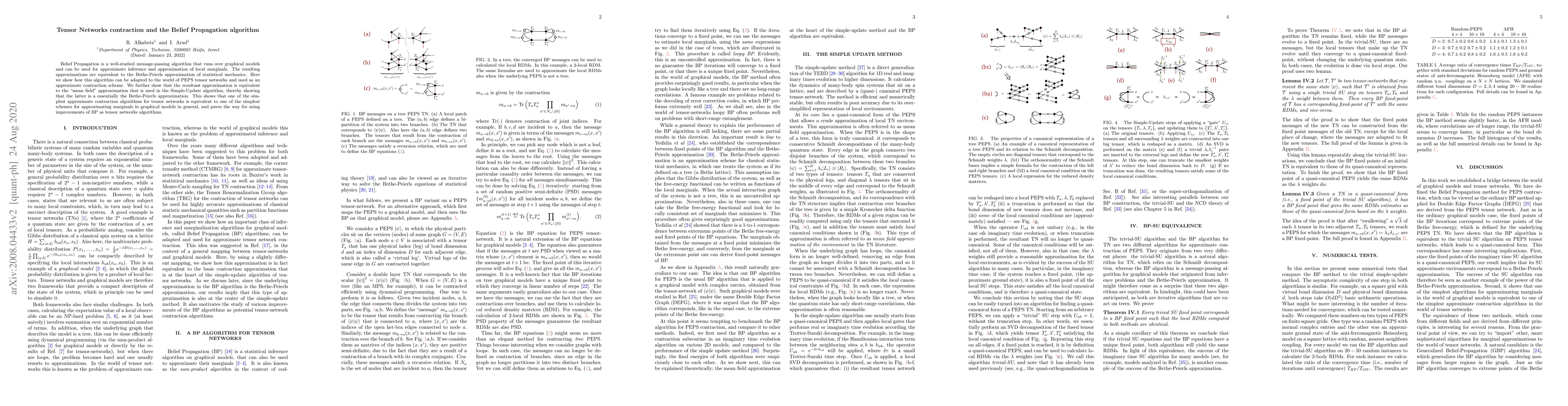 This paper adapts the Belief Propagation algorithm to tensor networks, specifically PEPS, for approximate contraction, showing its equivalence to the mean field approximation used in the Simple-Update algorithm. This establishes a connection between tensor network contraction and graphical model inference, suggesting potential cross-disciplinary improvements.