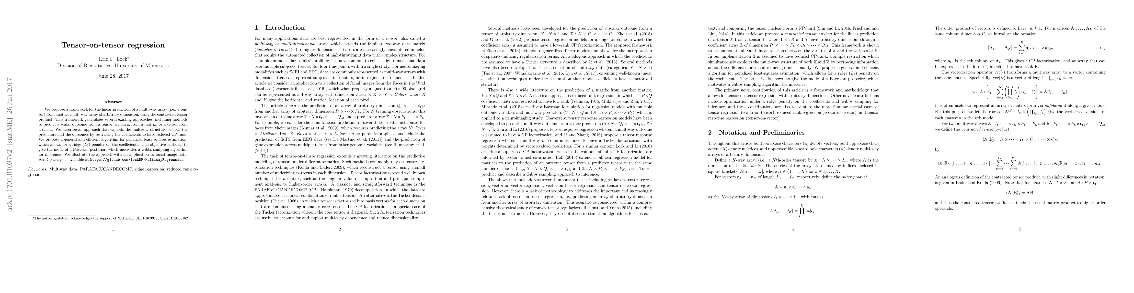 A new framework for predicting multi-way arrays from others is proposed, allowing for efficient linear prediction with reduced coefficients, applicable to various data types and applications.