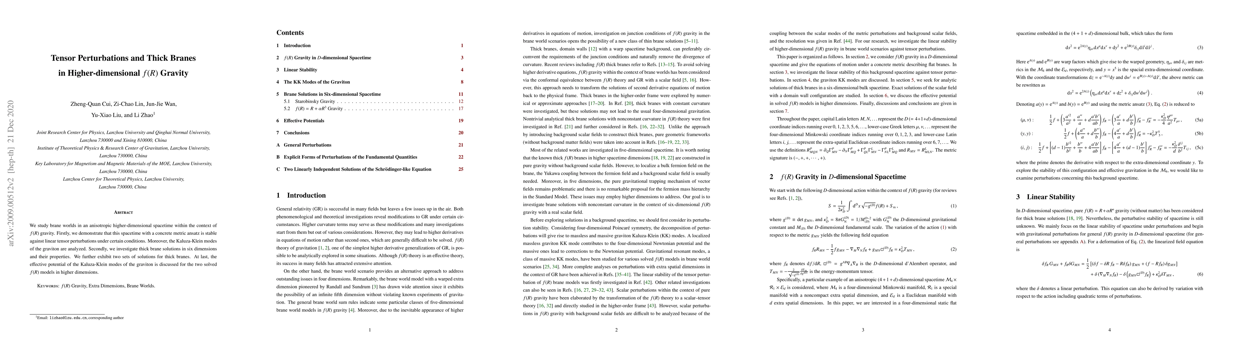 We study brane worlds in an anisotropic higher-dimensional spacetime within the context of $f(R)$ gravity. Firstly, we demonstrate that this spacetime with a concrete metric ansatz is stable against linear tensor perturbations under certain conditions. Moreover, the Kaluza-Klein modes of the graviton are analyzed. Secondly, we investigate thick brane solutions in six dimensions and their properties. We further exhibit two sets of solutions for thick branes. At last, the effective potential of the Kaluza-Klein modes of the graviton is discussed for the two solved $f(R)$ models in higher dimensions.