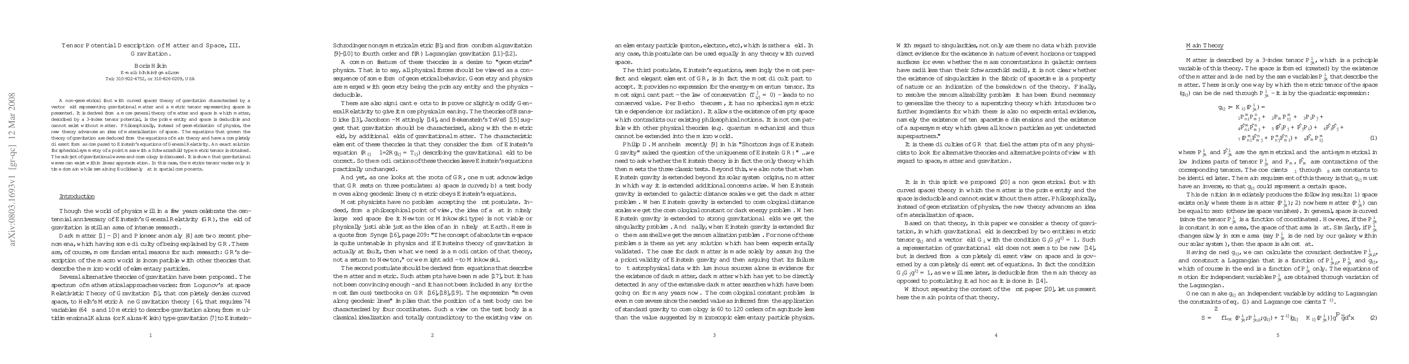 This paper proposes a non-geometrical theory of gravitation based on a vector field representing gravitational matter and a metric tensor for space, derived from a broader theory where matter is fundamental and space is dependent on it. Unlike Einstein's General Relativity, the equations here take a different form, and it presents an exact solution for a point mass with a Schwarzschild-type metric tensor, discussing gravitational waves and cosmology.