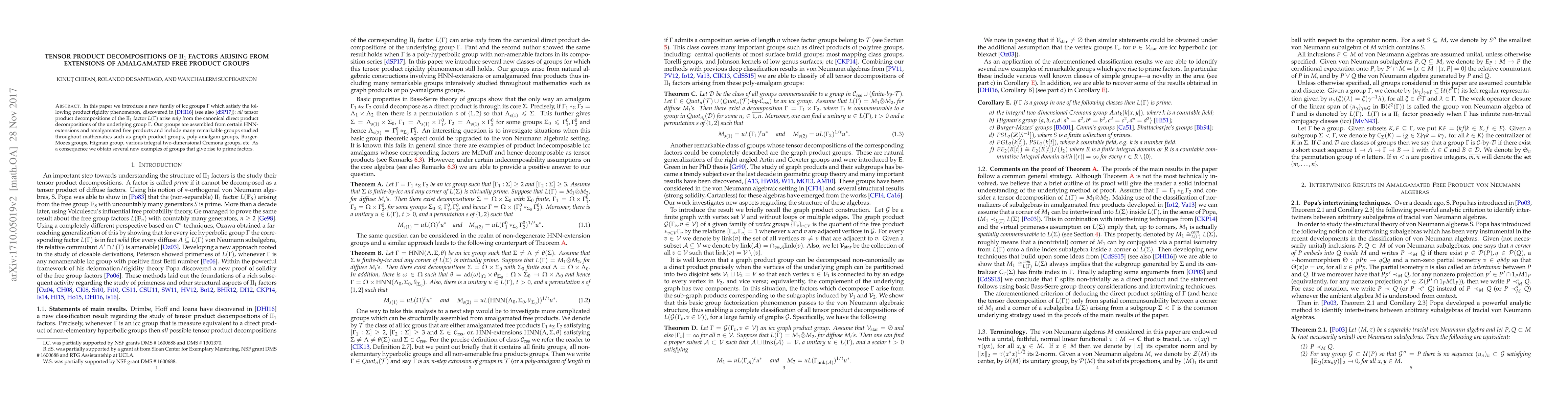 This paper introduces a novel family of icc groups whose II$_1$ factors exhibit product rigidity, meaning their tensor decompositions mirror the group's direct product structure. The groups are derived from HNN-extensions and amalgamated free products, including significant mathematical structures like graph product groups and Burger-Mozes groups.