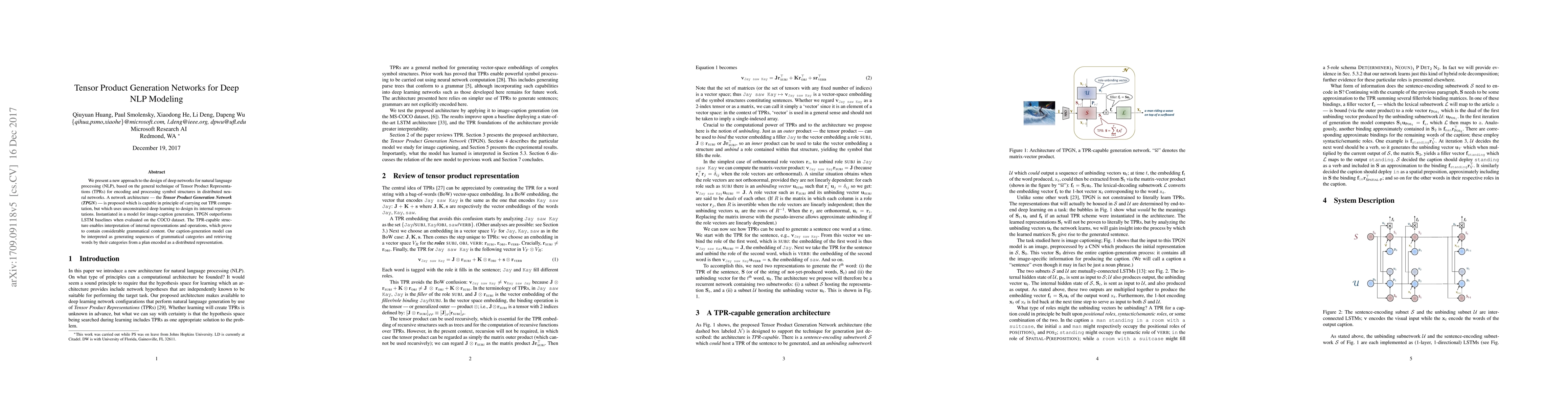 A new neural network architecture called Tensor Product Generation Network (TPGN) outperforms LSTM baselines in image-caption generation tasks and provides interpretable internal representations.