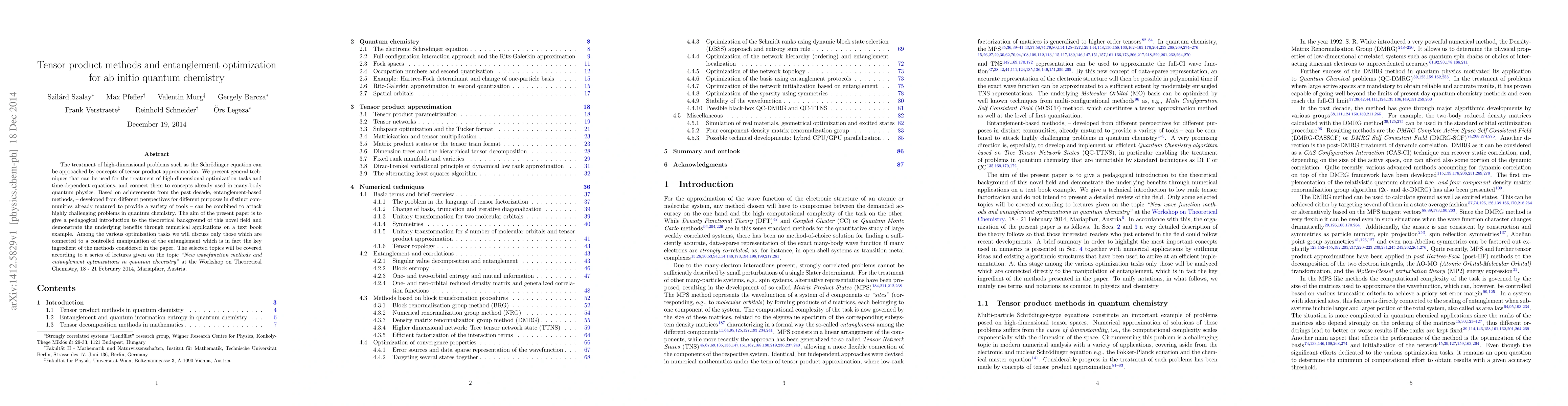 Researchers introduce tensor product methods to solve high-dimensional problems in quantum chemistry, combining existing entanglement-based methods for optimization tasks and time-dependent equations.