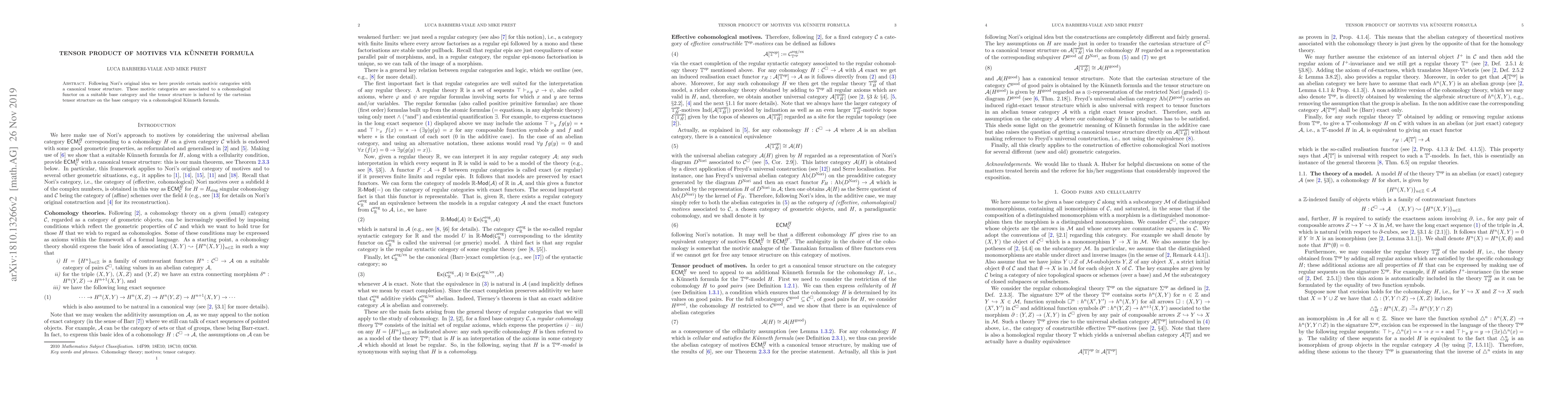 Researchers develop a method to create motivic categories with tensor structures inspired by K"unneth formulas, linking cohomology and motives in algebraic geometry.