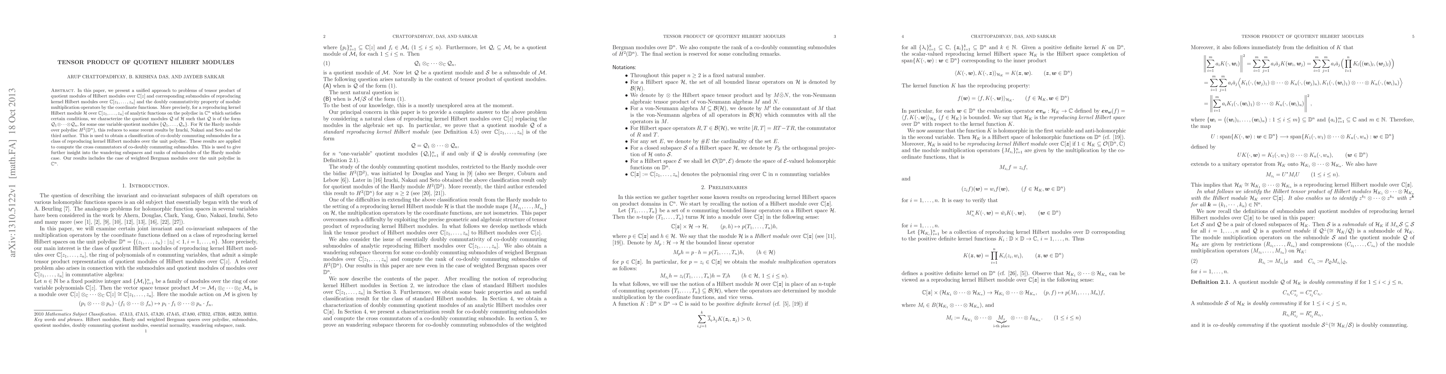 This paper develops a unified framework for tensor products of quotient Hilbert modules over $\mathbb{C}[z]$ and $\mathbb{C}[z_1, \ldots, z_n]$, focusing on the doubly commutativity property of module multiplication operators. It classifies co-doubly commuting submodules for reproducing kernel Hilbert modules over the unit polydisc, providing insights into wandering subspaces and ranks, particularly for Hardy and weighted Bergman modules.