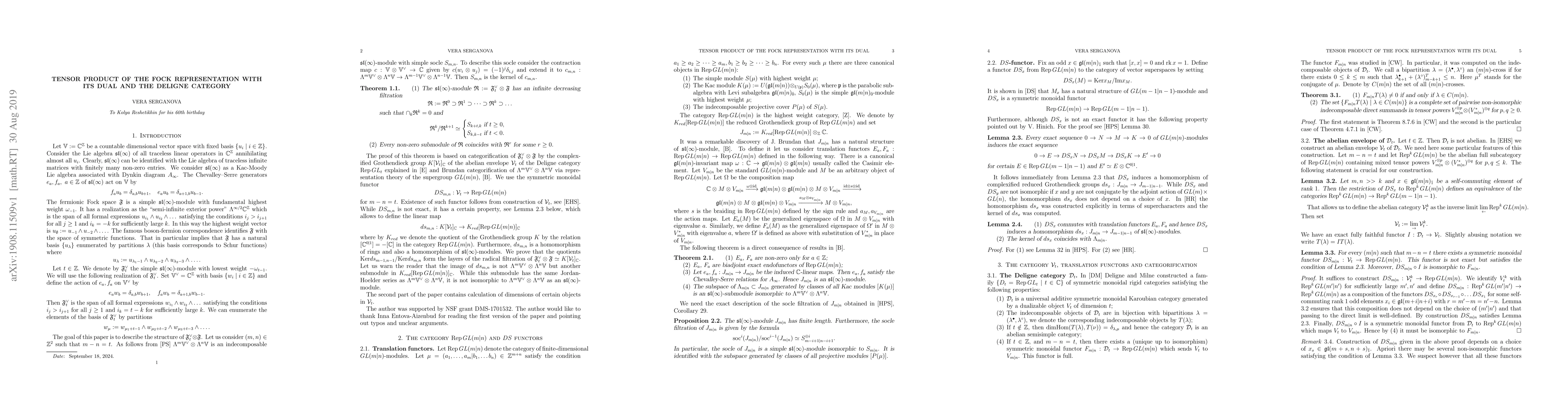 We describe the structure of the tensor product of the basic Fock representation of sl(\infty) with its shifted dual. More precisely we prove that this tensor product has a unique decreasing filtration with simple quotients. We use the categorification of this representation via translation functors in the abelain envelope of the Deligne category GL(t) for integral t. We also compute dimensions of standard and tilting objects in this abelian envelope.