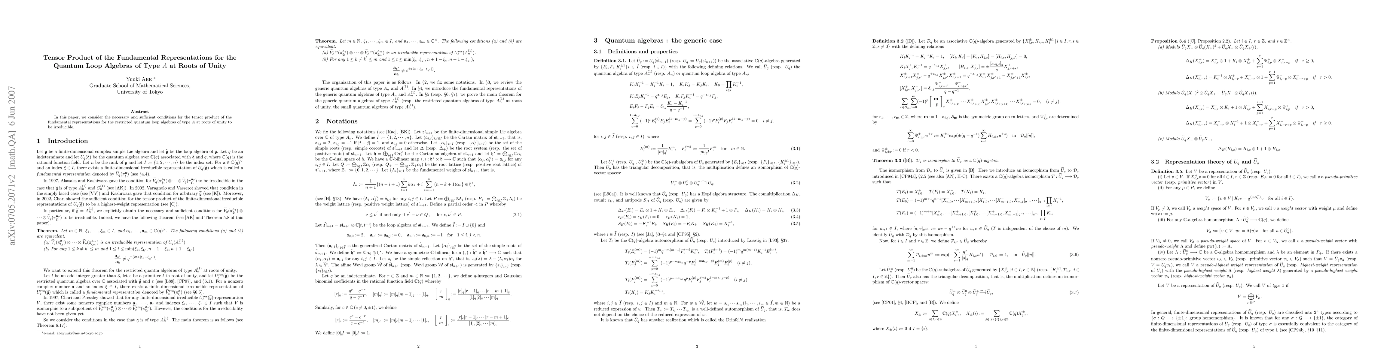 In this paper, we consider the necessary and sufficient conditions for the tensor product of the fundamental representations for the restricted quantum loop algebras of type A at roots of unity to be irreducible.
