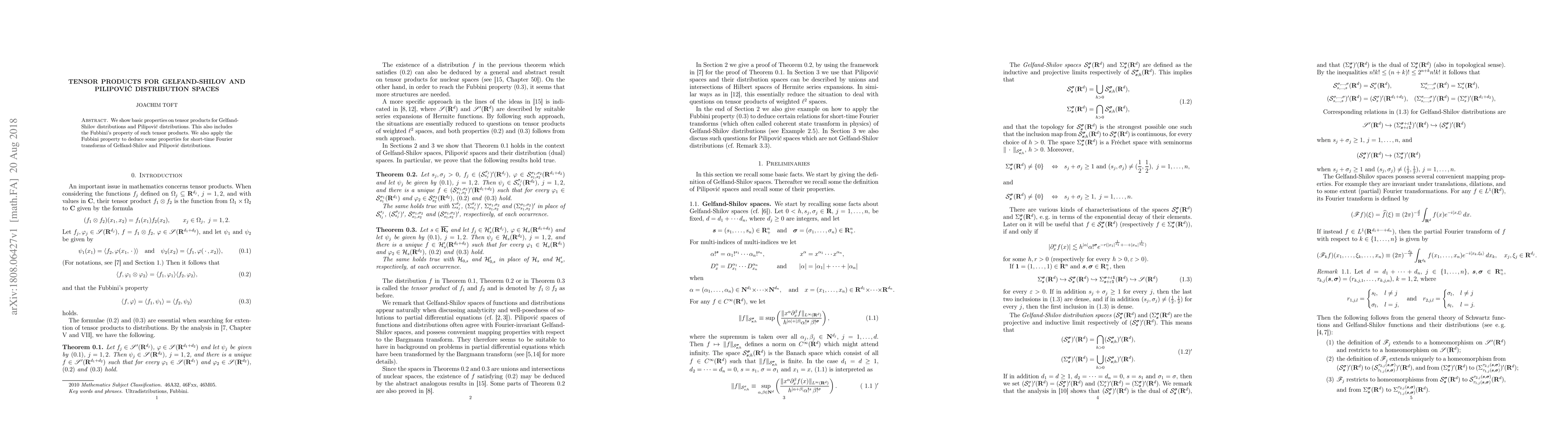 This paper explores the fundamental properties of tensor products for Gelfand-Shilov and Pilipović distribution spaces, including the Fubini property, and applies this to derive characteristics for short-time Fourier transforms within these spaces.
