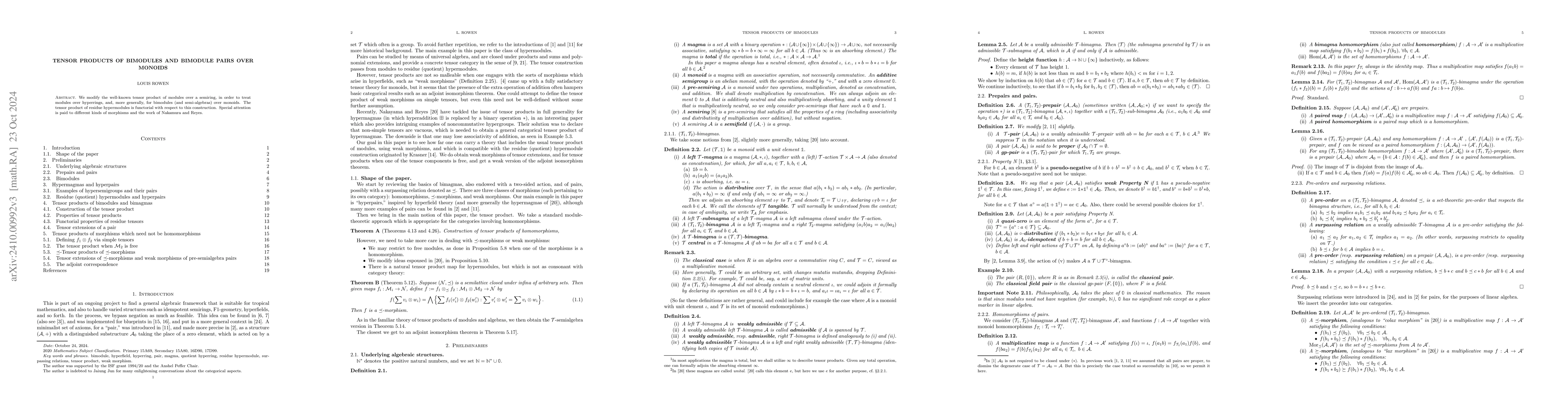 This paper modifies the tensor product of modules over semirings to handle modules over hyperrings and bimodules over monoids, ensuring functoriality for residue hypermodules. It also explores various morphism types and relates the work to Nakamura and Reyes' contributions.
