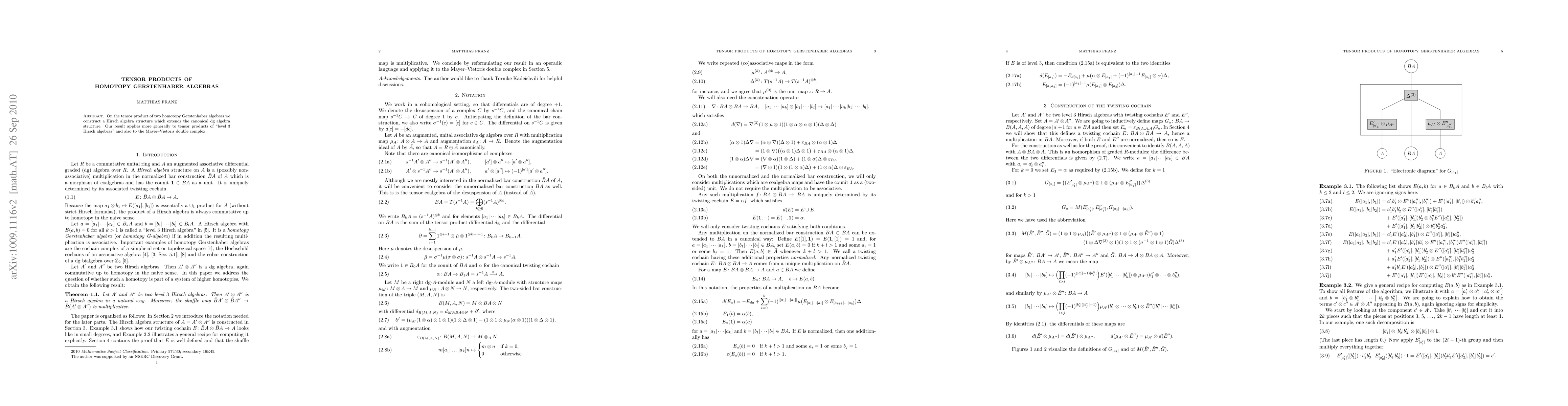 The paper constructs a Hirsch algebra structure on the tensor product of two homotopy Gerstenhaber algebras, extending the canonical differential graded algebra structure. This result is generalized to tensor products of "level 3 Hirsch algebras" and applies to the Mayer-Vietoris double complex.
