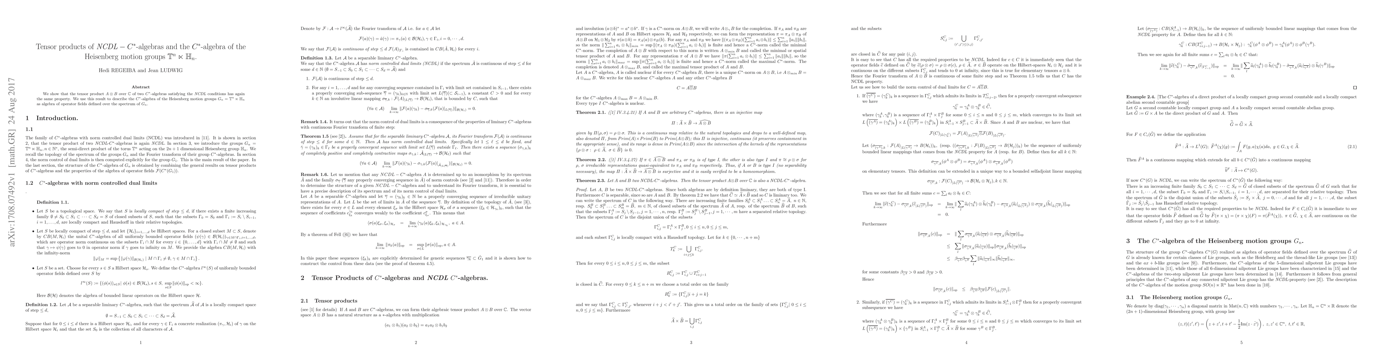 The paper shows that the tensor product of NCDL-C*-algebras is again a C*-algebra with the same property, used to describe the Heisenberg motion groups' C*-algebra as an algebra of operator fields.
