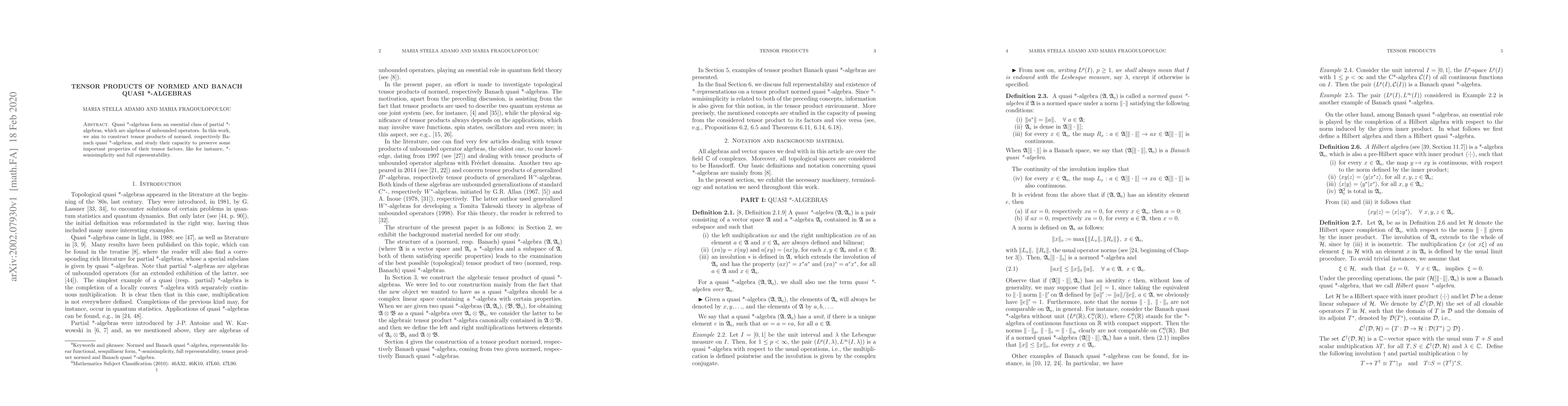 Summary: This paper constructs tensor products of normed and Banach quasi *-algebras, focusing on preserving properties such as *-semisimplicity and full representability in these algebraic structures. The work aims to enhance the understanding of these partial *-algebras of unbounded operators.