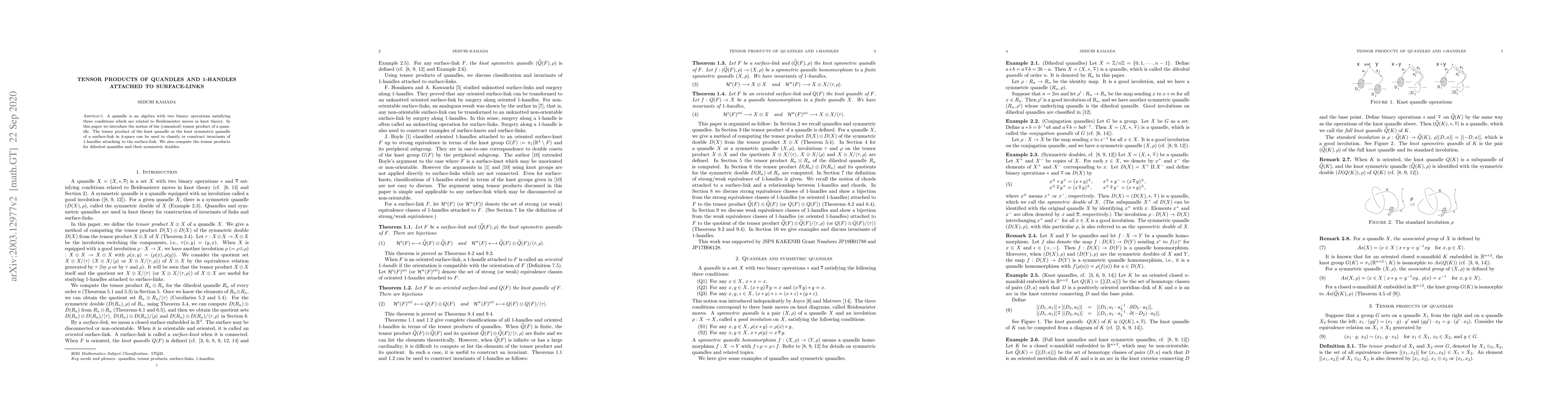Researchers introduced a tensor product of quandles to classify or construct invariants for 1-handles attached to surface-links in 4-space.