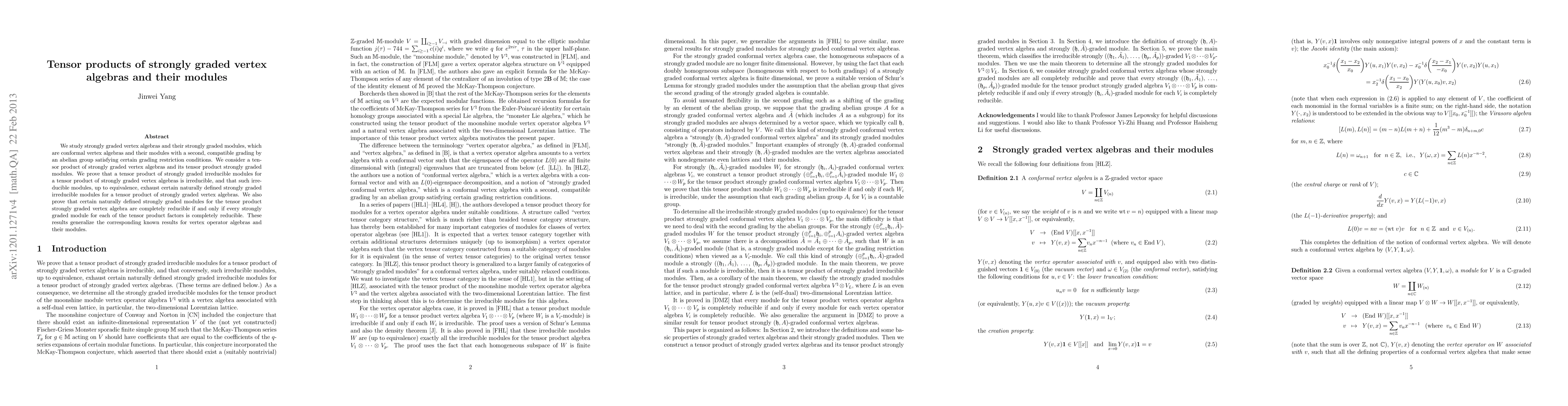 This paper examines the tensor products of strongly graded vertex algebras and their modules, proving that tensor products of strongly graded irreducible modules remain irreducible and completely reducible under specific conditions. It generalizes existing results for vertex operator algebras to this broader framework.