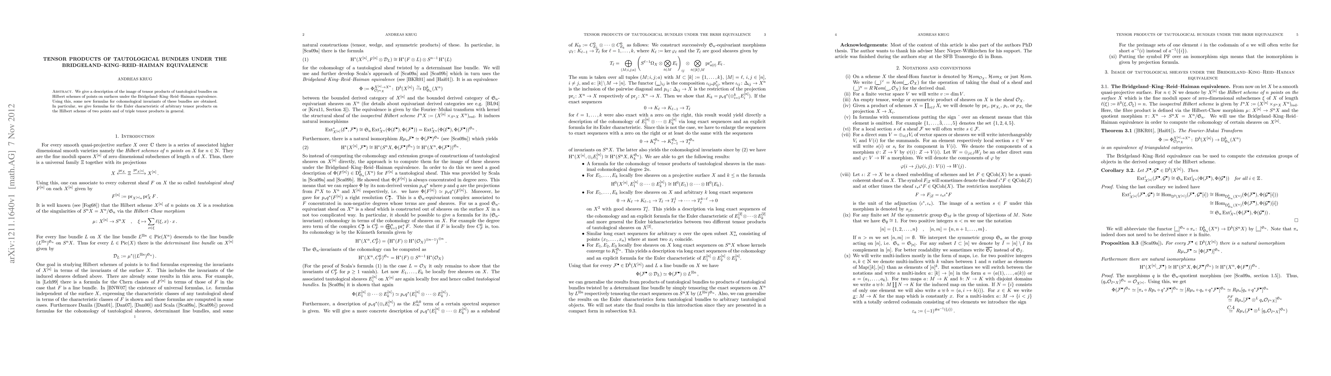 We give a description of the image of tensor products of tautological bundles on Hilbert schemes of points on surfaces under the Bridgeland-King-Reid-Haiman equivalence. Using this, some new formulas for cohomological invariants of these bundles are obtained. In particular, we give formulas for the Euler characteristic of arbitrary tensor products on the Hilbert scheme of two points and of triple tensor products in general.