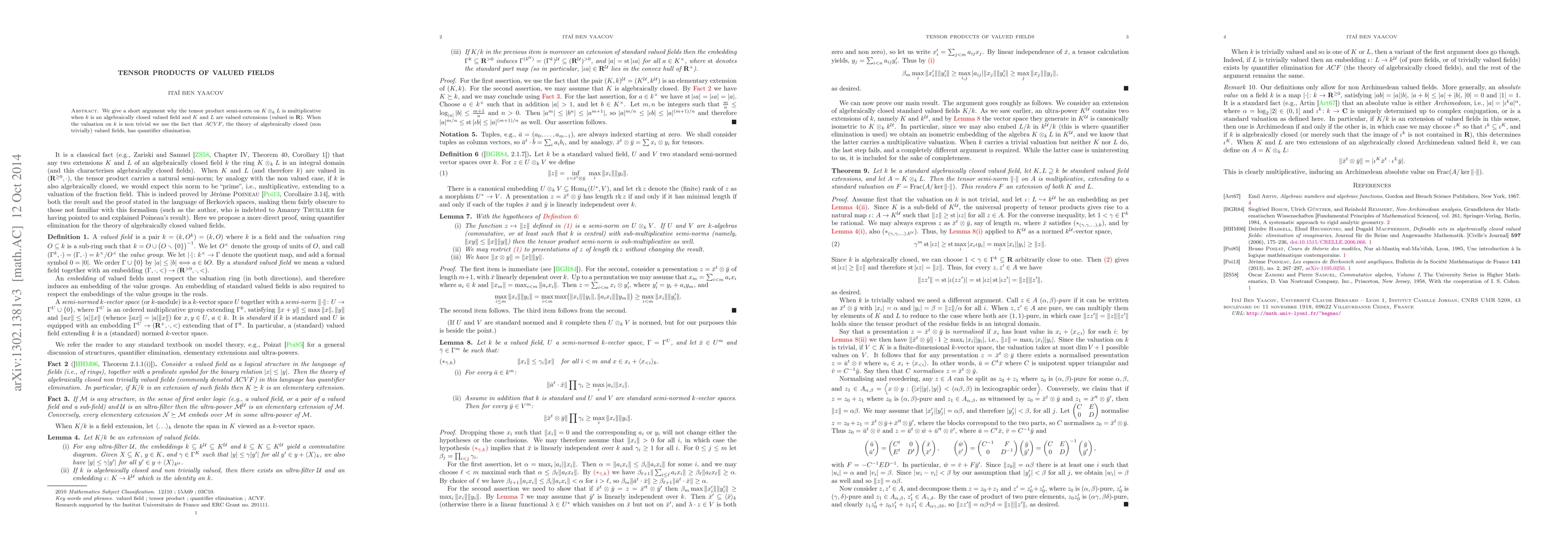 We give a short argument why the tensor product valuation on $K \otimes_k L$ is multiplicative when $k$ is an algebraically closed valued field and $K$ and $L$ are valued extensions (all valuations being in $\bR$). When the valuation on $k$ is non trivial we use the fact that $ACVF$, the theory of algebraically closed (non trivially) valued fields, has quantifier elimination.
