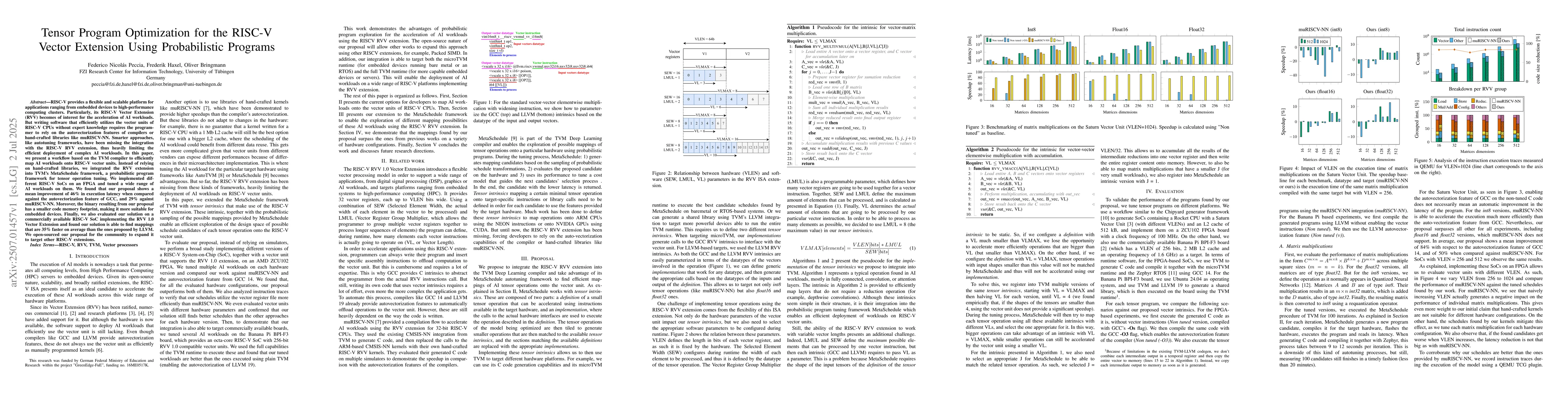 The paper introduces tensor intrinsics integrated into TVM for efficient mapping of AI workloads onto RISC-V vector units, along with a probabilistic program tuning framework for various hardware configurations.