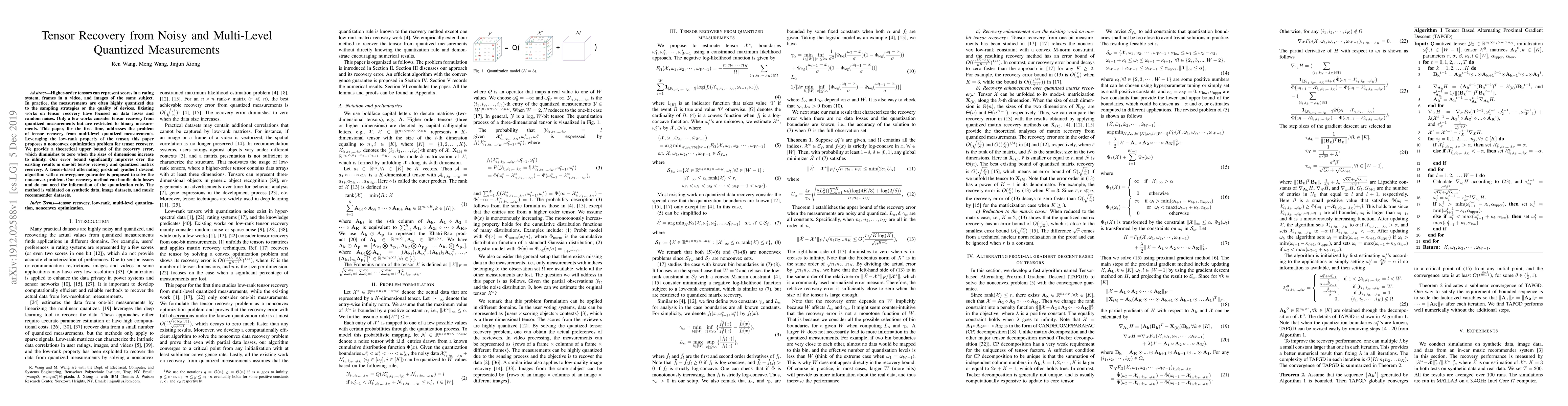 Higher-order tensors can represent scores in a rating system, frames in a video, and images of the same subject. In practice, the measurements are often highly quantized due to the sampling strategies or the quality of devices. Existing works on tensor recovery have focused on data losses and random noises. Only a few works consider tensor recovery from quantized measurements but are restricted to binary measurements. This paper, for the first time, addresses the problem of tensor recovery from multi-level quantized measurements. Leveraging the low-rank property of the tensor, this paper proposes a nonconvex optimization problem for tensor recovery. We provide a theoretical upper bound of the recovery error, which diminishes to zero when the sizes of dimensions increase to infinity. Our error bound significantly improves over the existing results in one-bit tensor recovery and quantized matrix recovery. A tensor-based alternating proximal gradient descent algorithm with a convergence guarantee is proposed to solve the nonconvex problem. Our recovery method can handle data losses and do not need the information of the quantization rule. The method is validated on synthetic data, image datasets, and music recommender datasets.