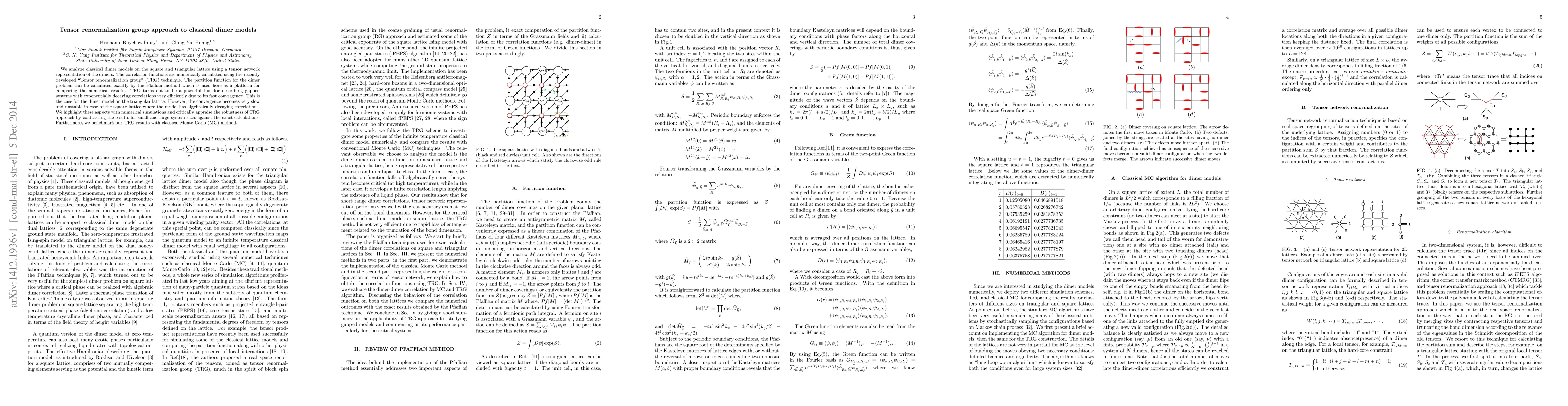 This paper employs the Tensor renormalization group (TRG) technique to analyze classical dimer models on square and triangular lattices, comparing its efficiency to exact calculations and classical Monte Carlo methods. TRG effectively describes gapped systems with exponentially decaying correlations, but struggles with the slow convergence for the square lattice due to its algebraically decaying correlations.