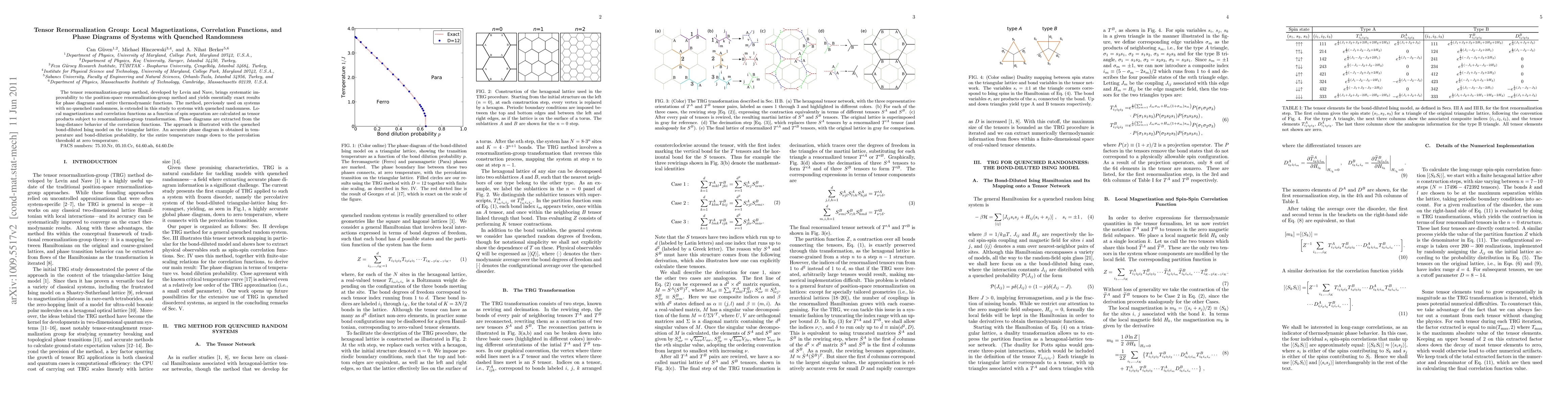 The tensor renormalization-group method, developed by Levin and Nave, brings systematic improvability to the position-space renormalization-group method and yields essentially exact results for phase diagrams and entire thermodynamic functions. The method, previously used on systems with no quenched randomness, is extended in this study to systems with quenched randomness. Local magnetizations and correlation functions as a function of spin separation are calculated as tensor products subject to renormalization-group transformation. Phase diagrams are extracted from the long-distance behavior of the correlation functions. The approach is illustrated with the quenched bond-diluted Ising model on the triangular lattice. An accurate phase diagram is obtained in temperature and bond-dilution probability, for the entire temperature range down to the percolation threshold at zero temperature.