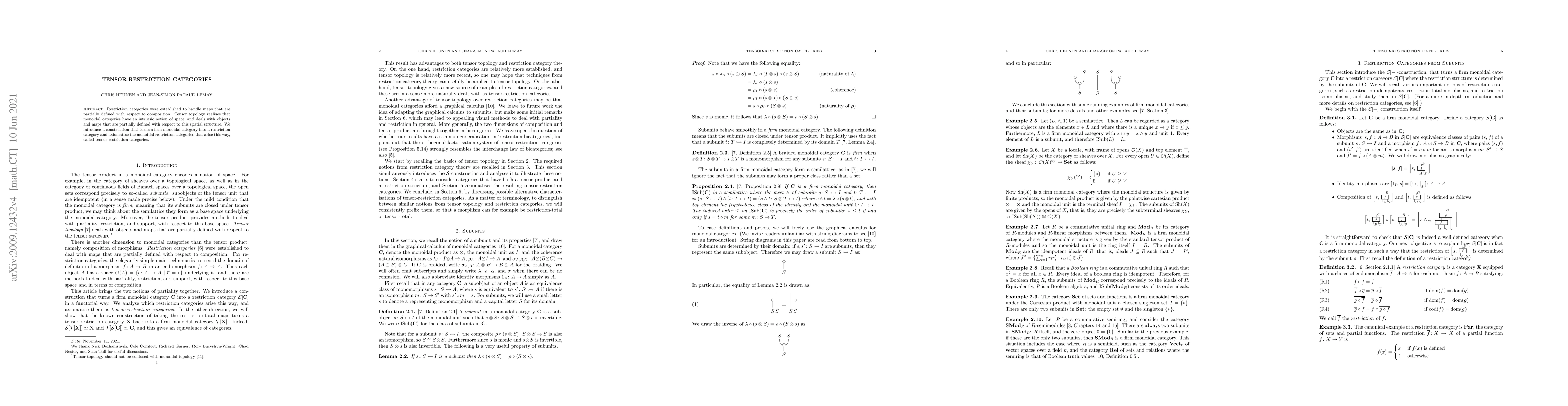 Restriction categories were established to handle maps that are partially defined with respect to composition. Tensor topology realises that monoidal categories have an intrinsic notion of space, and deals with objects and maps that are partially defined with respect to this spatial structure. We introduce a construction that turns a firm monoidal category into a restriction category and axiomatise the monoidal restriction categories that arise this way, called tensor-restriction categories.