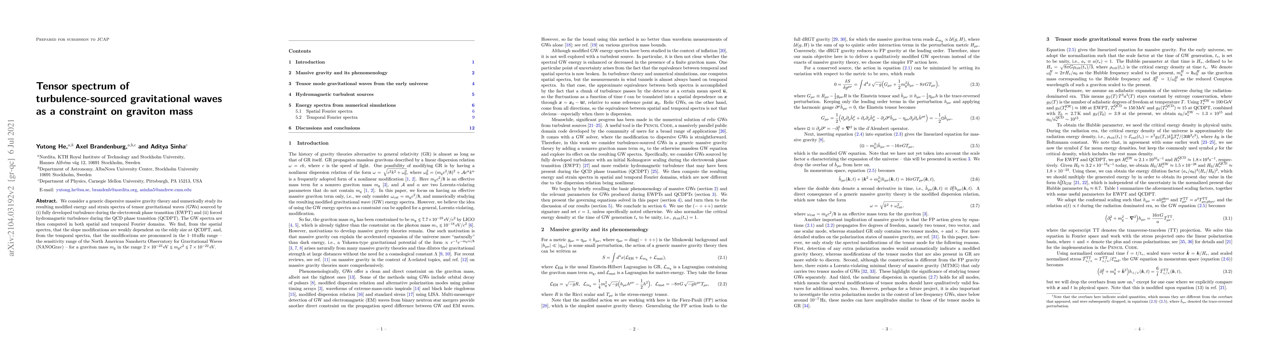 This paper investigates the tensor spectrum of gravitational waves generated by turbulence during phase transitions, exploring how a massive graviton affects these spectra. The study finds that modifications in the GW spectra in the 1--10 nHz range can constrain graviton mass to a range of $2\times10^{-23}$ eV to $7\times10^{-22}$ eV.
