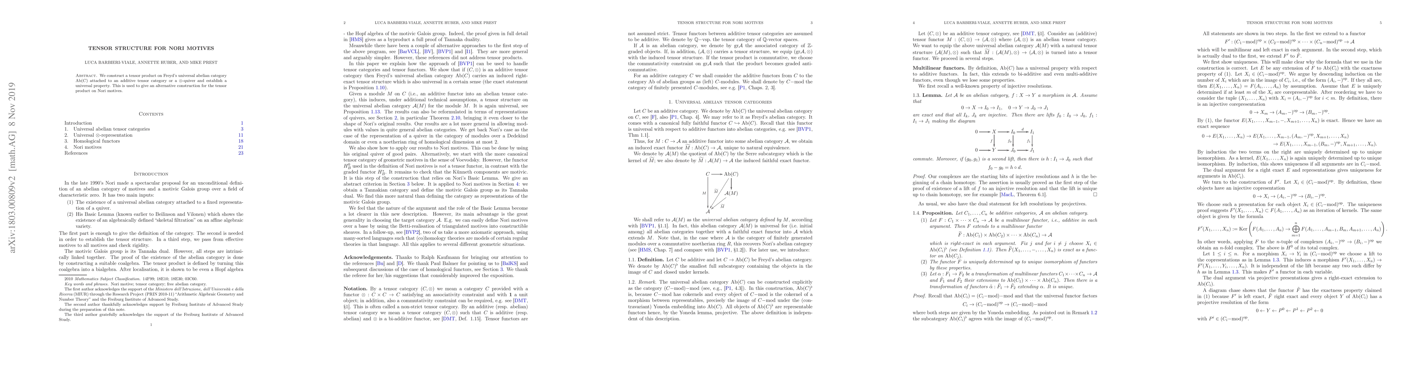 The paper constructs a tensor product on Freyd's universal abelian category linked to additive tensor categories or tensor quivers, establishing a universal property, which serves as a new approach for defining the tensor product in Nori motives.