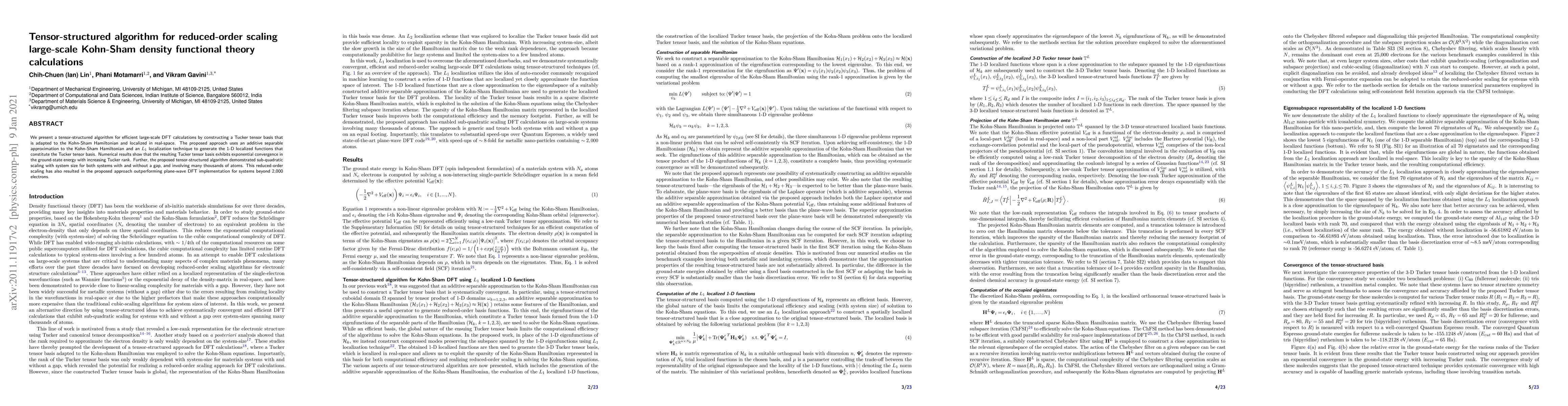 We present a tensor-structured algorithm for efficient large-scale DFT calculations by constructing a Tucker tensor basis that is adapted to the Kohn-Sham Hamiltonian and localized in real-space. The proposed approach uses an additive separable approximation to the Kohn-Sham Hamiltonian and an $L_1$ localization technique to generate the 1-D localized functions that constitute the Tucker tensor basis. Numerical results show that the resulting Tucker tensor basis exhibits exponential convergence in the ground-state energy with increasing Tucker rank. Further, the proposed tensor-structured algorithm demonstrated sub-quadratic scaling with system size for both systems with and without a gap, and involving many thousands of atoms. This reduced-order scaling has also resulted in the proposed approach outperforming plane-wave DFT implementation for systems beyond 2,000 electrons.