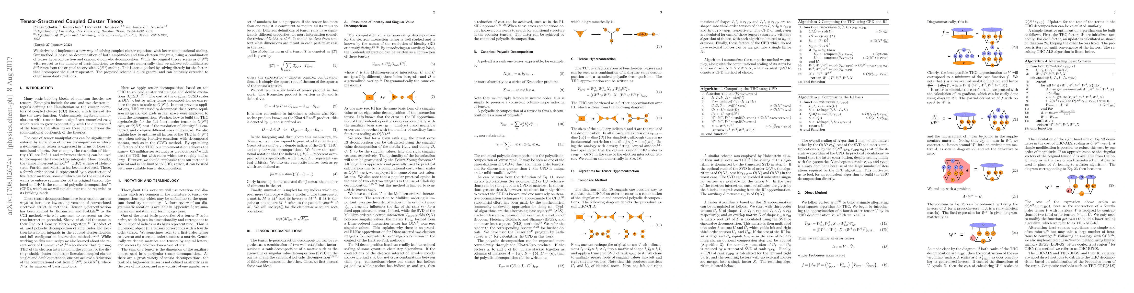 This paper introduces a tensor-structured coupled cluster theory that reduces computational scaling from $O(N^6)$ to $O(N^4)$ while maintaining accuracy, using tensor hypercontraction and canonical polyadic decomposition to decompose amplitudes and integrals. The method achieves sub-millihartree accuracy compared to the traditional approach.