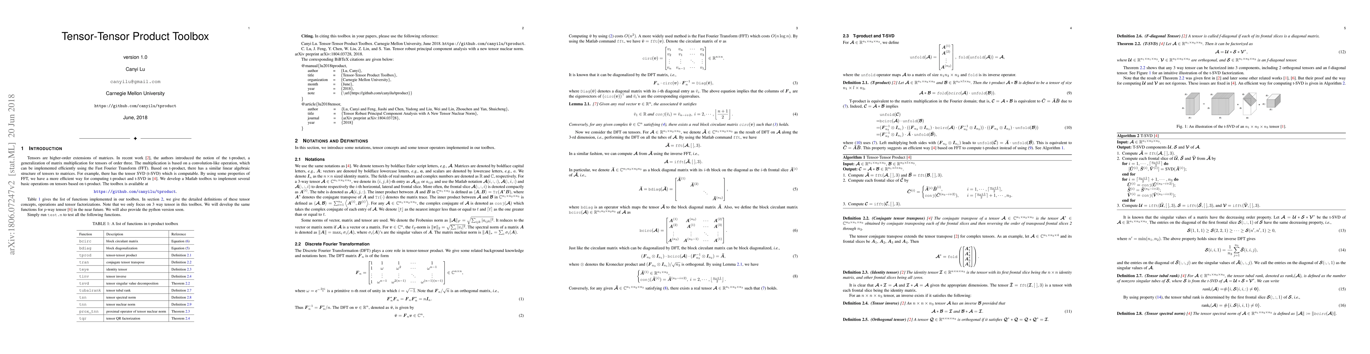 This paper introduces a Matlab toolbox implementing tensor operations based on the tensor-tensor product, extending matrix operations like SVD and spectral norms to tensors. The toolbox is available for public use at https://github.com/canyilu/tproduct.