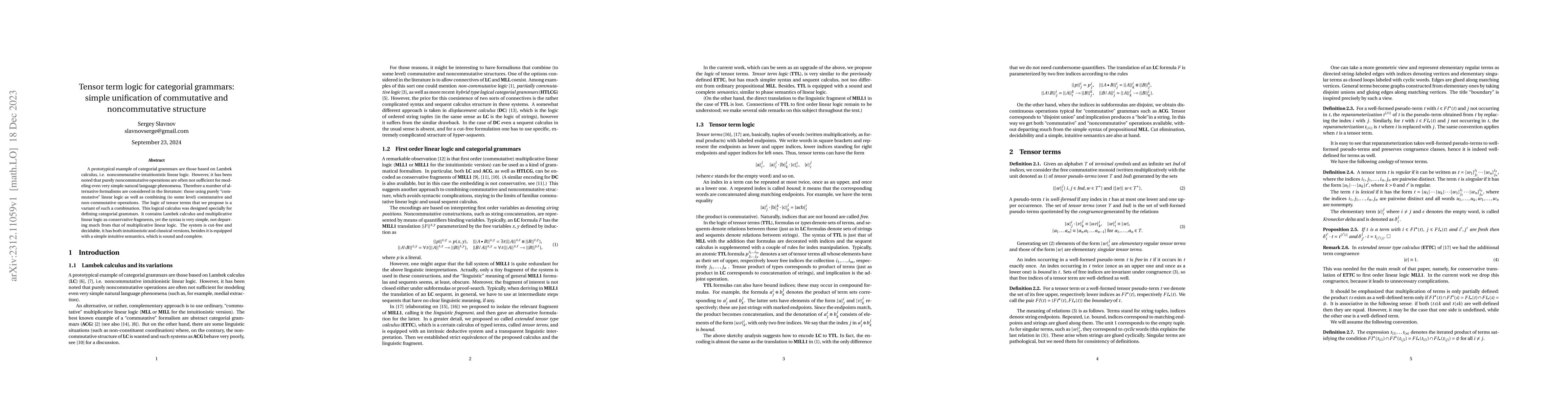 This research proposes a tensor term logic for categorial grammars that unifies commutative and noncommutative structures, providing a simple yet powerful framework for modeling natural language phenomena. The logic is designed to be decidable, sound, and complete, combining Lambek calculus and multiplicative linear logic with a straightforward syntax.
