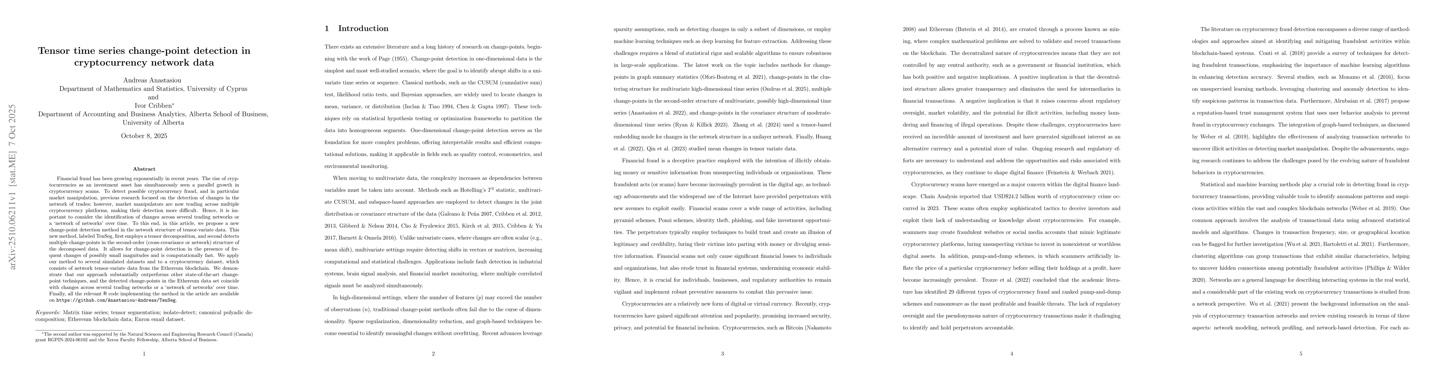 The research introduces a tensor-based approach for detecting change-points in cryptocurrency network data, combining tensor decomposition with statistical methods to analyze dynamic network structures over time.