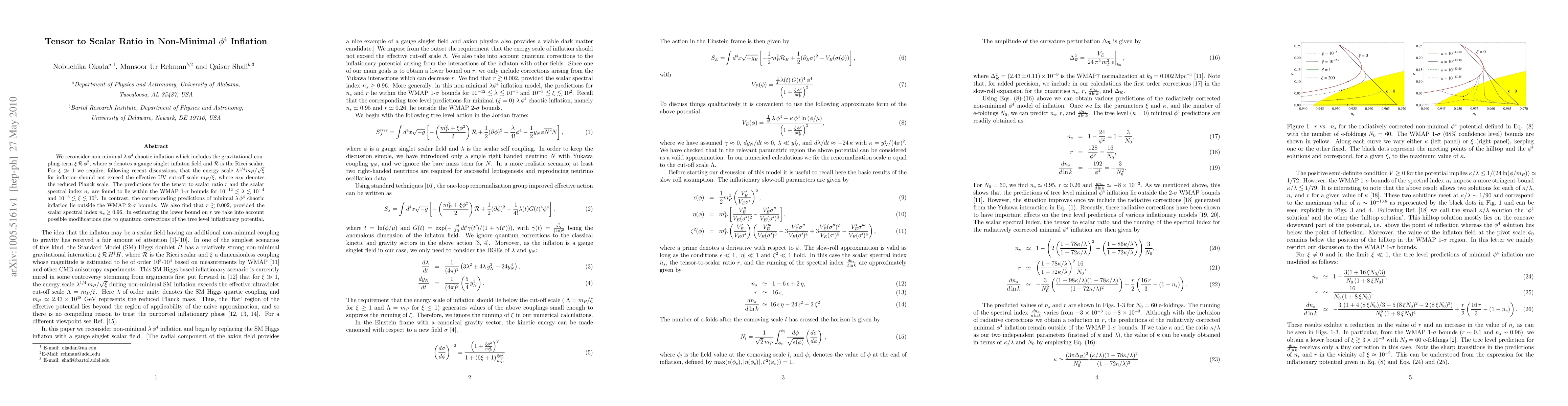 This paper examines non-minimal $\lambda \phi^4$ chaotic inflation with a gravitational coupling term, finding that the tensor to scalar ratio $r$ and scalar spectral index $n_s$ fall within WMAP 1-$\sigma$ bounds for specific parameter ranges. In contrast, minimal $\lambda \phi^4$ inflation predictions lie outside WMAP 2-$\sigma$ bounds, and $r > 0.002$ is predicted for $n_s > 0.96$.