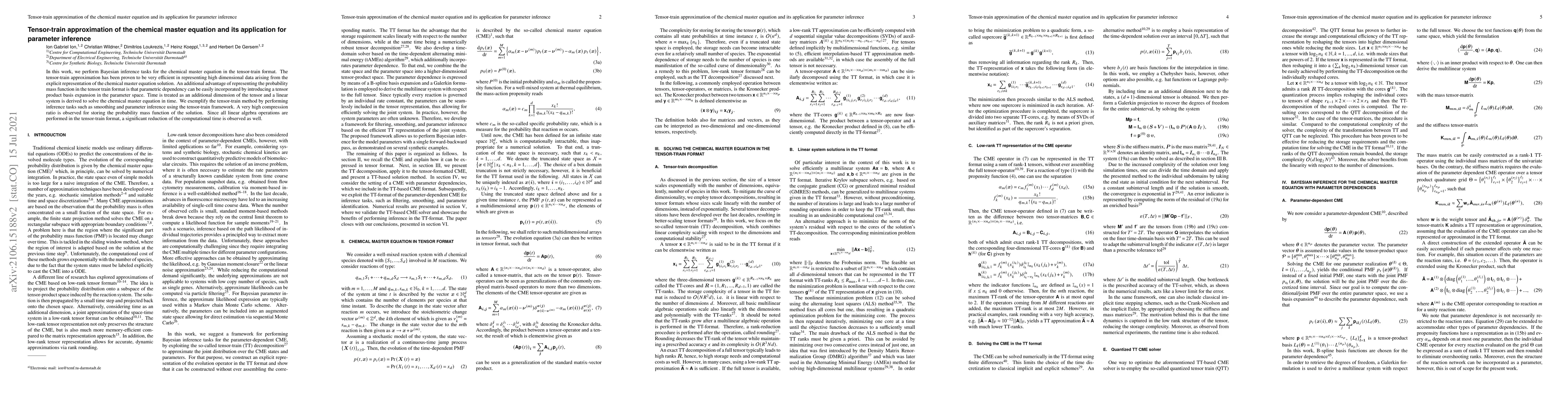 This paper introduces tensor-train approximation for the chemical master equation, enabling efficient Bayesian inference tasks. It demonstrates high compression ratios and significant computational time reductions by representing the probability mass function in tensor-train format, facilitating parameter inference and smoothing.