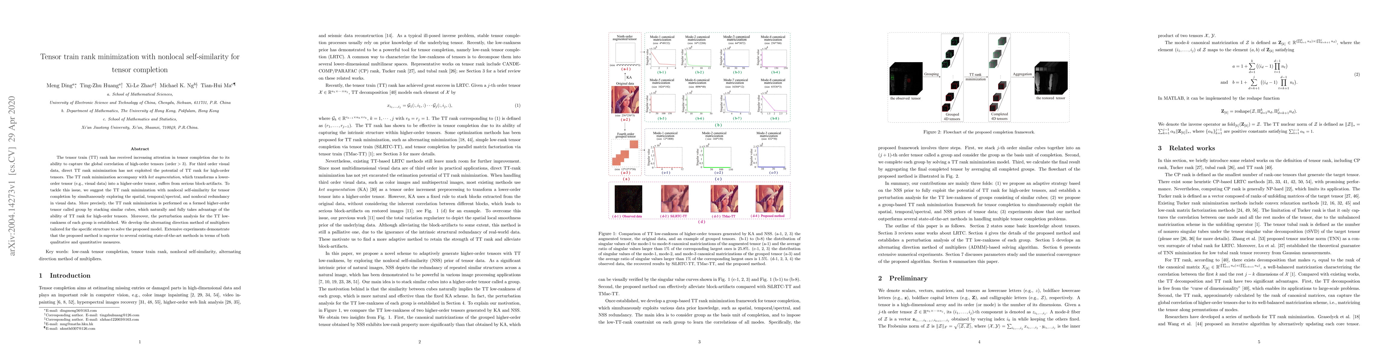 This paper proposes a tensor train rank minimization method with nonlocal self-similarity for tensor completion, leveraging spatial, temporal/spectral, and nonlocal redundancy in visual data. The method effectively addresses block-artifacts by forming higher-order tensor groups and utilizing the TT rank's ability for high-order tensors, outperforming existing state-of-the-art methods.