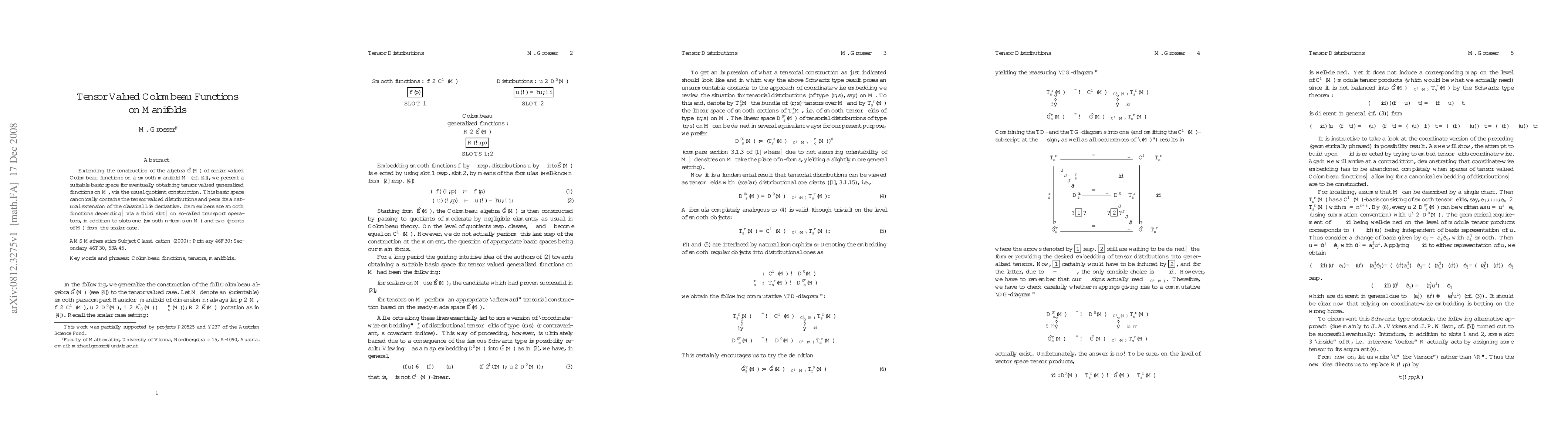 Extending the construction of the (intrinsically defined) full algebra of scalar valued Colombeau functions on a smooth manifold M (Grosser et al., Adv. Math. 166 (2002), 179-206) we present a suitable basic space for eventually obtaining tensor valued generalized functions on M, via the usual quotient construction. This basic space canonically contains the tensor valued distributions and permits a natural extension of the classical Lie derivative. Its members are smooth functions depending - via a third slot - on so-called transport operators, in addition to slots one (smooth n-forms on M) and two (points of M) from the scalar case.
