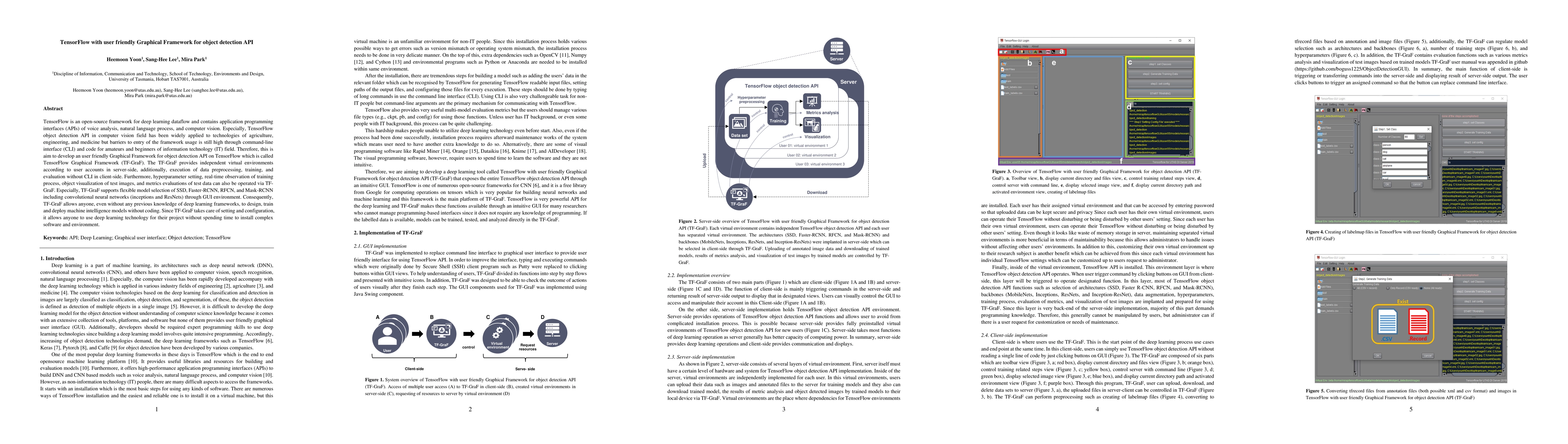 This research develops TensorFlow Graphical Framework (TF-GraF), a user-friendly graphical interface for TensorFlow's object detection API, to reduce barriers for beginners in IT. TF-GraF provides GUI-based environments for data preprocessing, training, evaluation, and model selection, allowing non-experts to design, train, and deploy machine learning models without coding.