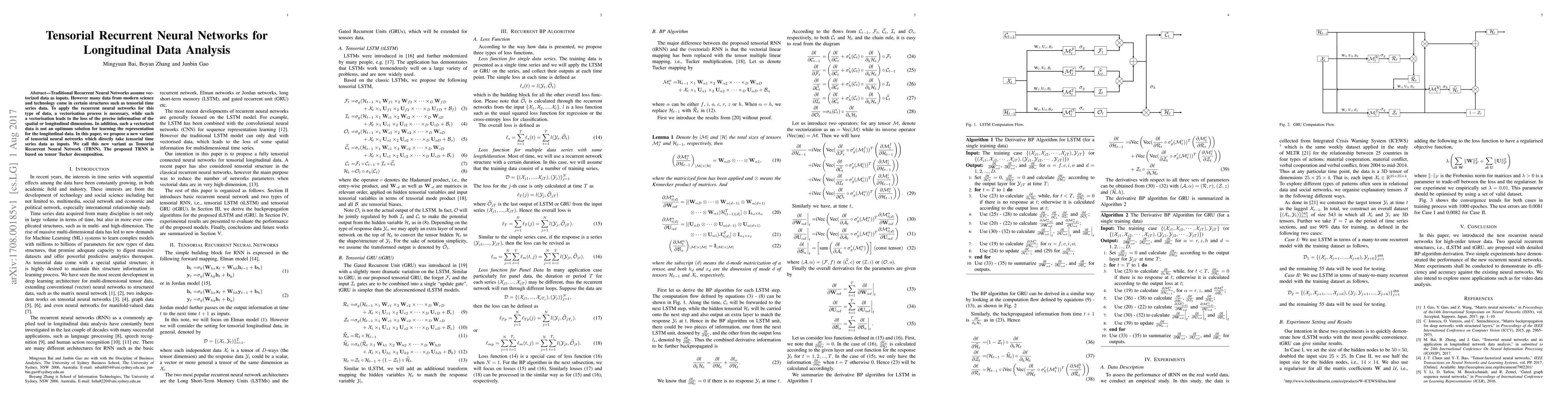 This paper proposes a Tensorial Recurrent Neural Network (TRNN) to directly handle tensorial time series data, avoiding the information loss from vectorization. The TRNN leverages tensor Tucker decomposition to efficiently learn representations of longitudinal data without compromising spatial or temporal dimensions.