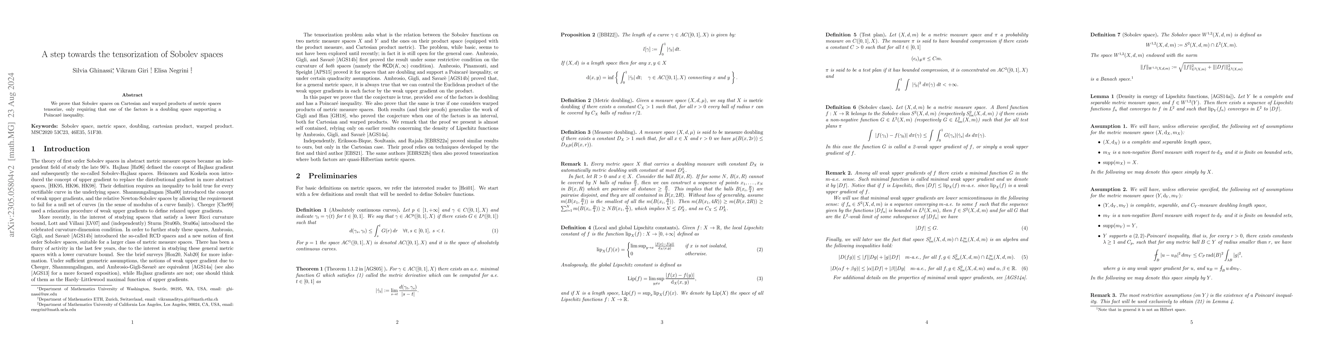 Summary: This paper demonstrates that Sobolev spaces on Cartesian and warped products of metric spaces tensorize under the condition that one factor is a doubling space with a Poincaré inequality. The result extends the tensorization property to a broader class of metric spaces.
