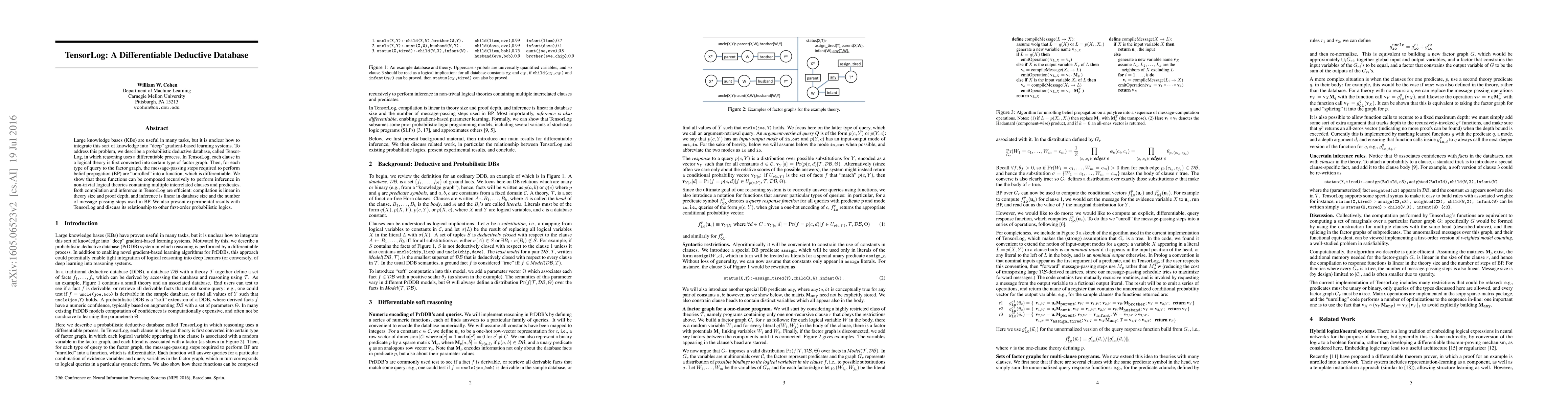 TensorLog's use of differentiable processes and its ability to learn from weighted boolean formulas make it a distinct contribution to the field.