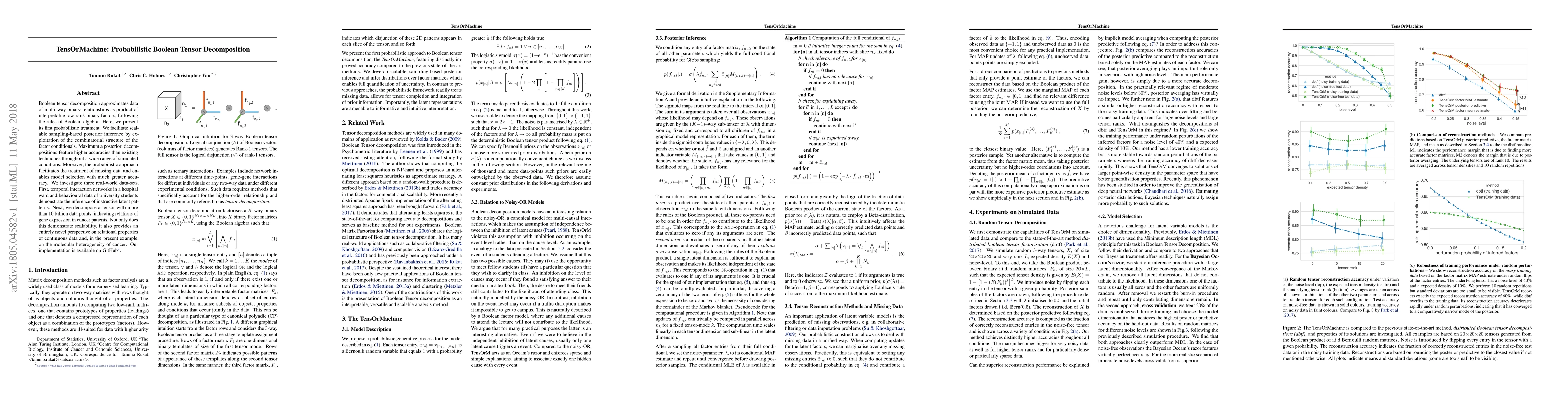 This paper introduces TensOrMachine, a probabilistic Boolean tensor decomposition method, which enhances scalability and accuracy through sampling-based posterior inference. It demonstrates superior performance in handling missing data and model selection, and showcases its application on large-scale real-world datasets, including temporal interaction networks and gene expression data in cancer.