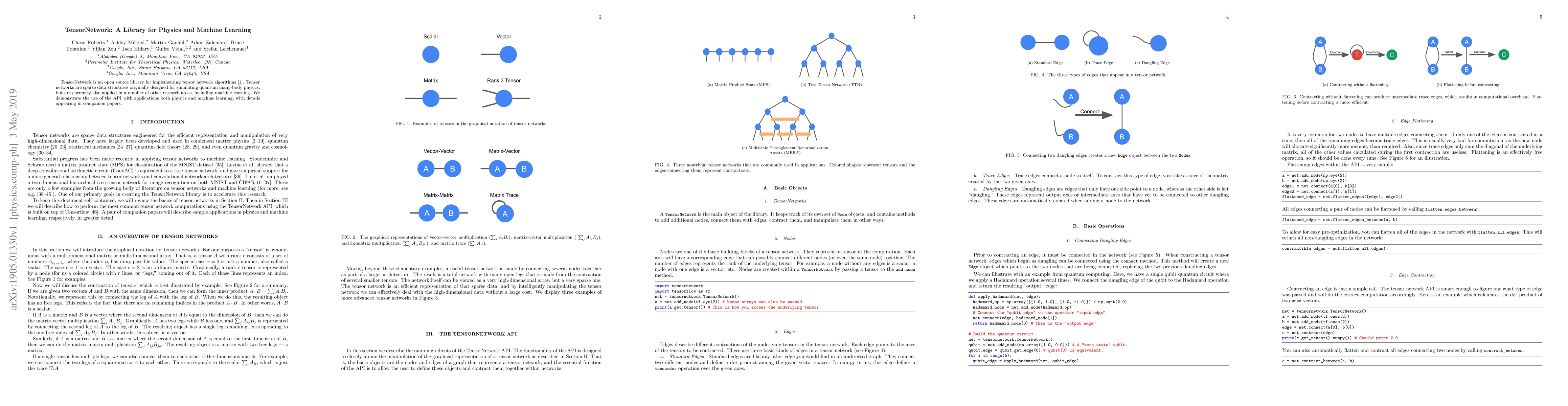 TensorNetwork is an open-source library for implementing tensor network algorithms, originally designed for quantum physics but also applicable in machine learning. It demonstrates its utility through applications in both physics and machine learning, with further details provided in accompanying papers.