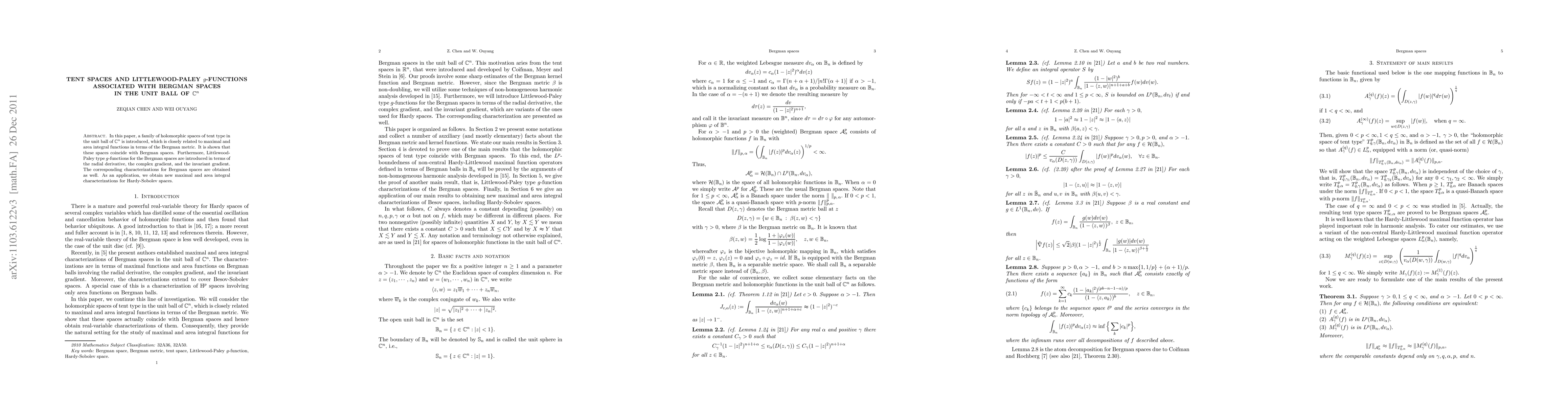 This paper introduces holomorphic tent spaces in the unit ball of $\mathbb{C}^n$ that coincide with Bergman spaces and develops Littlewood-Paley $g$-functions for these spaces. It also provides new characterizations for Hardy-Sobolev spaces using maximal and area integrals.