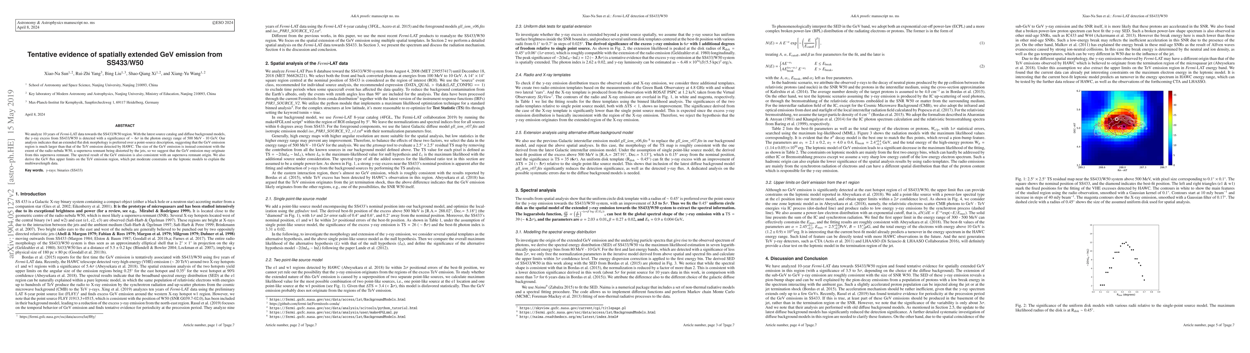 We analyze 10 years of Fermi-LAT data towards the SS433/W50 region. With the latest source catalog and diffuse background models, the gamma-ray excess from SS433/W50 is detected with a significance of 6{\sigma} in the photon energy range of 500 MeV - 10 GeV. Our analysis indicates that an extended flat disk morphology is preferred over a point-source description, suggesting that the GeV emission region is much larger than that of the TeV emission detected by HAWC. The size of the GeV emission is instead consistent with the extent of the radio nebula W50, a supernova remnant being distorted by the jets, so we suggest that the GeV emission may originate from this supernova remnant. The spectral result of the GeV emission is also consistent with an supernova remnant origin. We also derive the GeV flux upper limits on the TeV emission region, which put moderate constrains on the leptonic models to explain the multiwavelength data.