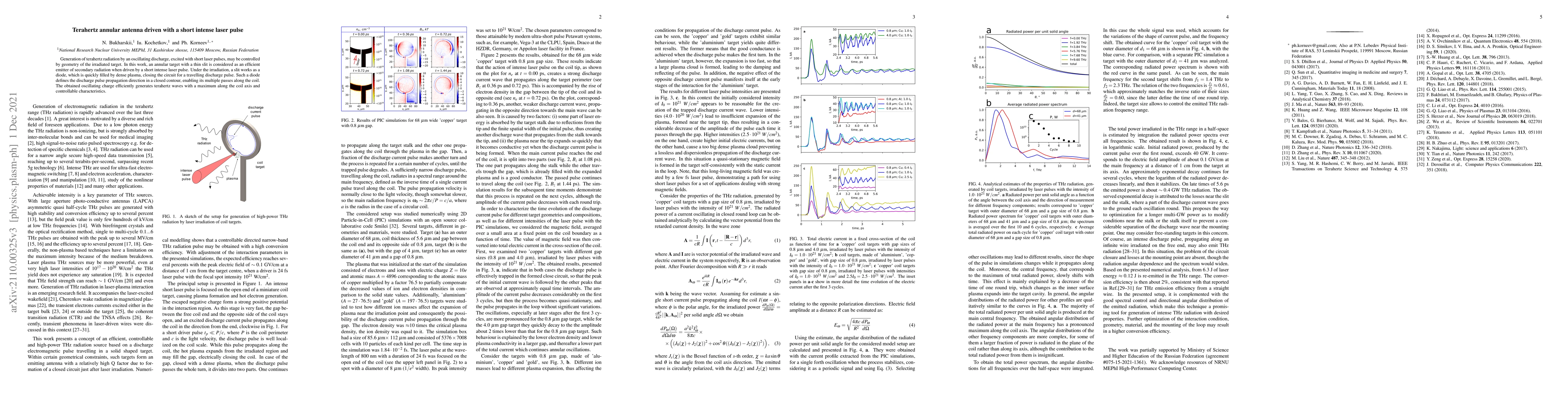 This paper explores the generation of terahertz radiation using an annular target with a slit, driven by short intense laser pulses. The slit acts as a plasma-filled diode, enabling multiple passes of a discharge pulse along a closed contour, resulting in efficient terahertz wave generation with controllable characteristics.