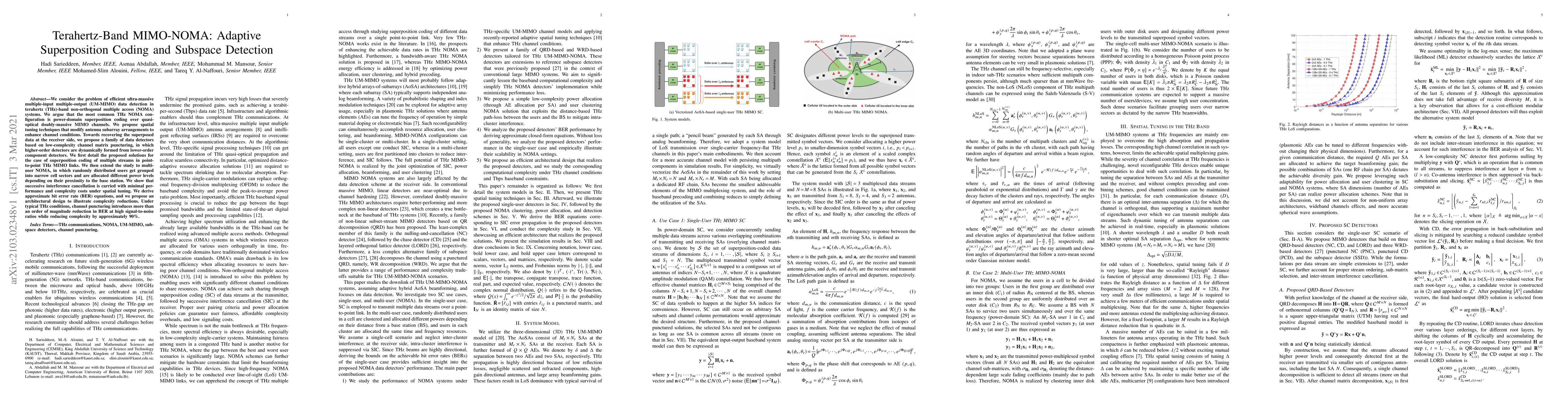 We consider the problem of efficient ultra-massive multiple-input multiple-output (UM-MIMO) data detection in terahertz (THz)-band non-orthogonal multiple access (NOMA) systems. We argue that the most common THz NOMA configuration is power-domain superposition coding over quasi-optical doubly-massive MIMO channels. We propose spatial tuning techniques that modify antenna subarray arrangements to enhance channel conditions. Towards recovering the superposed data at the receiver side, we propose a family of data detectors based on low-complexity channel matrix puncturing, in which higher-order detectors are dynamically formed from lower-order component detectors. We first detail the proposed solutions for the case of superposition coding of multiple streams in point-to-point THz MIMO links. We then extend the study to multi-user NOMA, in which randomly distributed users get grouped into narrow cell sectors and are allocated different power levels depending on their proximity to the base station. We show that successive interference cancellation is carried with minimal performance and complexity costs under spatial tuning. We derive approximate bit error rate (BER) equations, and we propose an architectural design to illustrate complexity reductions. Under typical THz conditions, channel puncturing introduces more than an order of magnitude reduction in BER at high signal-to-noise ratios while reducing complexity by approximately 90%.