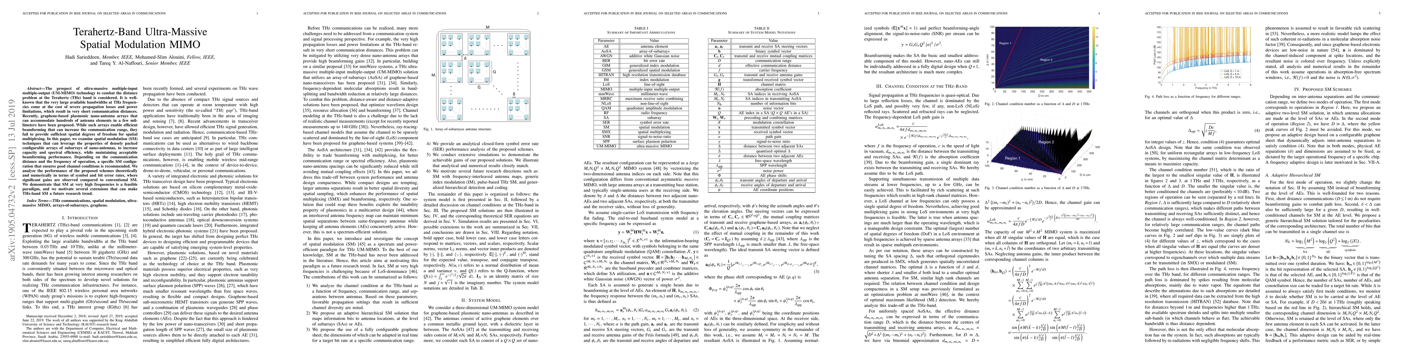 This paper explores ultra-massive MIMO technology at Terahertz frequencies to enhance communication range using graphene-based plasmonic nano-antenna arrays. It proposes spatial modulation techniques to boost capacity and spectral efficiency, demonstrating significant performance improvements over conventional methods.